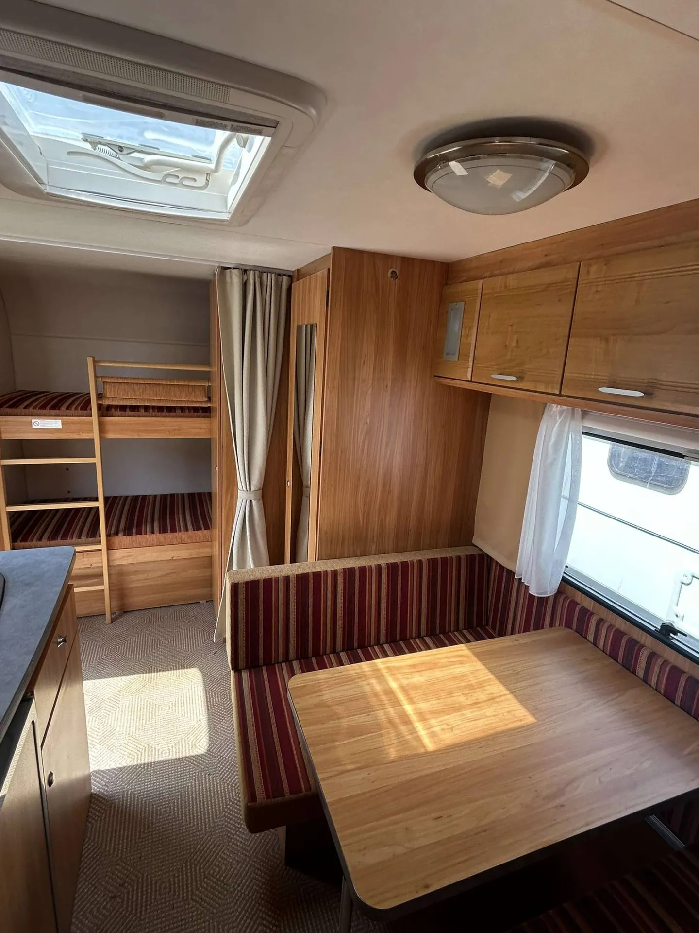 Idéale pour les familles avec ses 6 couchages (lits superposés, lit double fixe et dînette transformable), la Premio 480TK de 2007 (PTAC 1 100 kg) offrait un excellent compromis entre compacité et espace de vie.