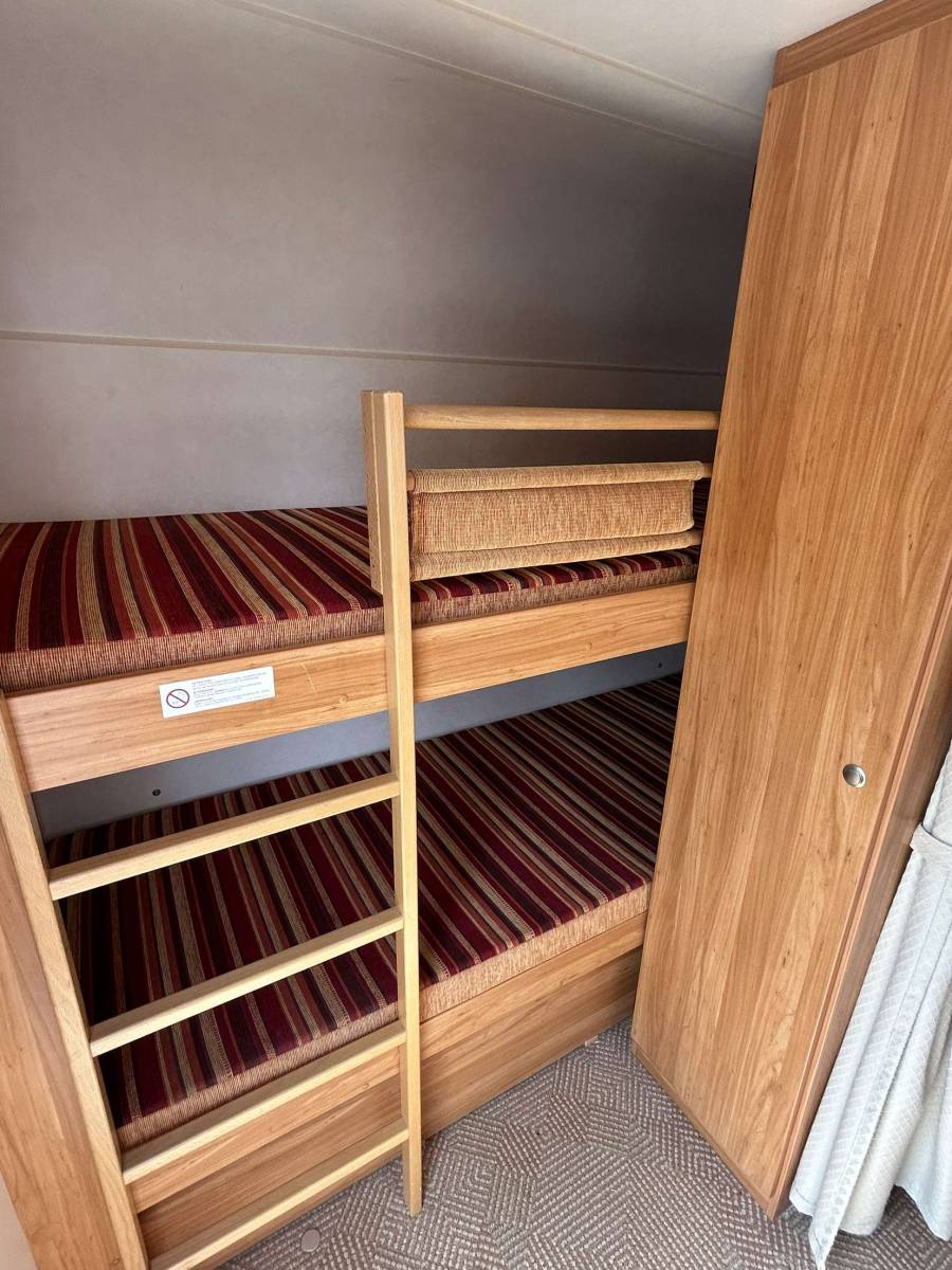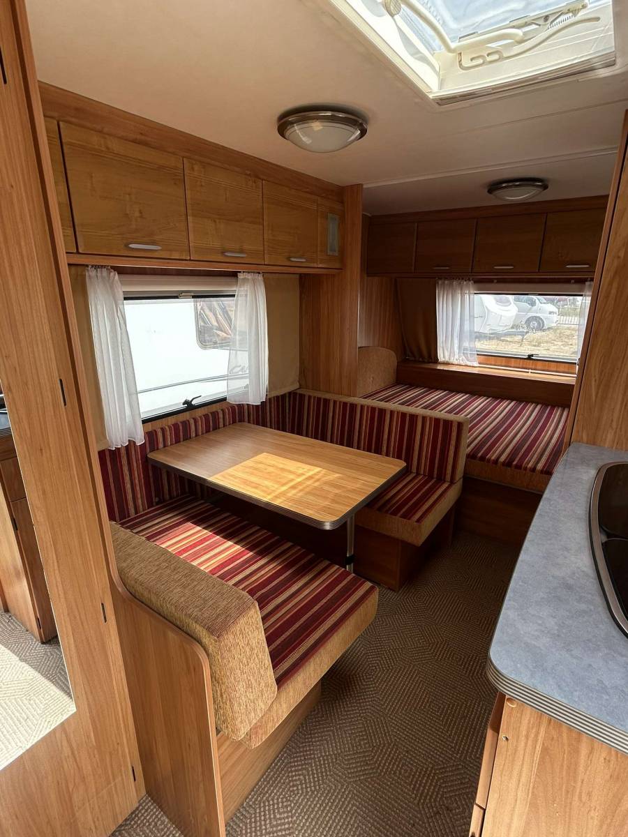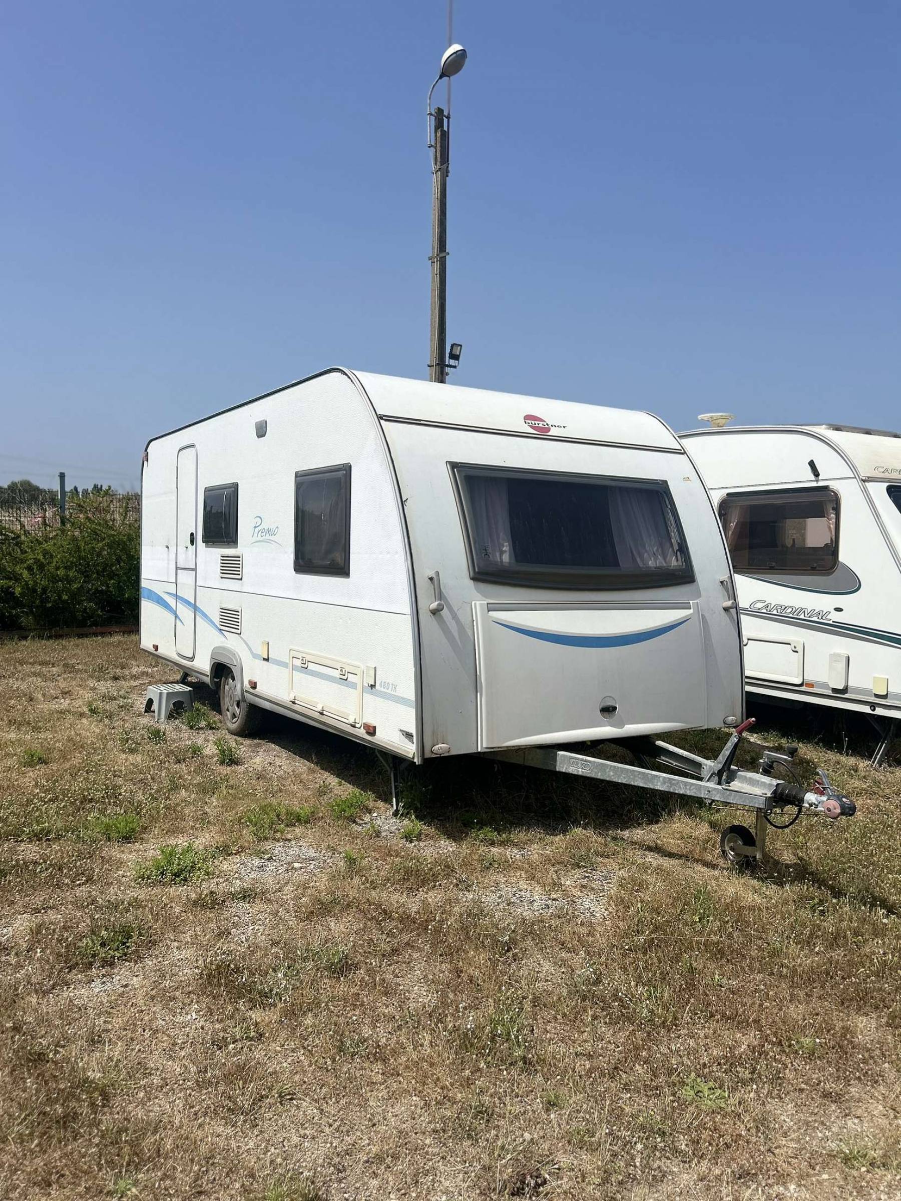 Idéale pour les familles avec ses 6 couchages (lits superposés, lit double fixe et dînette transformable), la Premio 480TK de 2007 (PTAC 1 100 kg) offrait un excellent compromis entre compacité et espace de vie.
