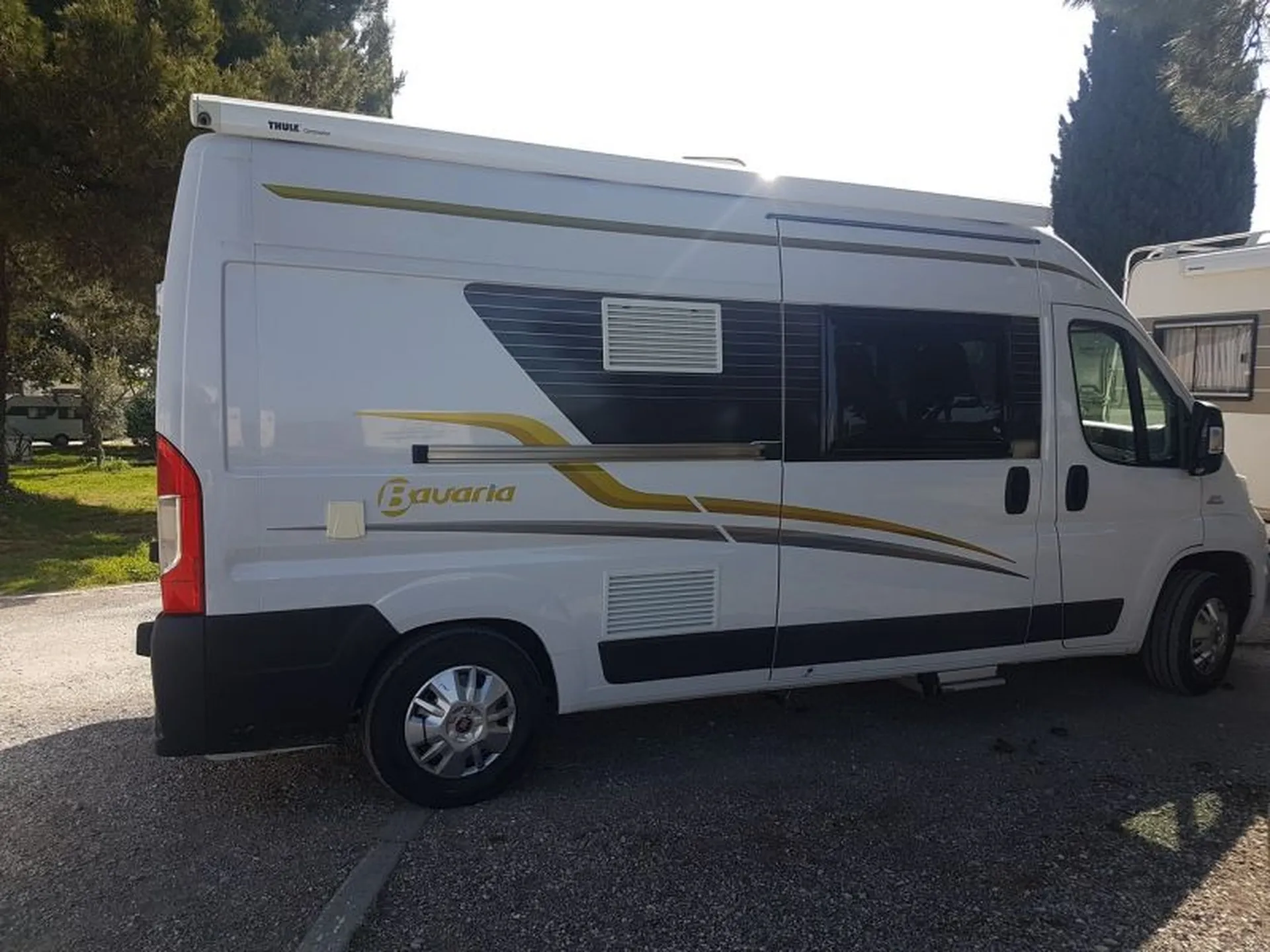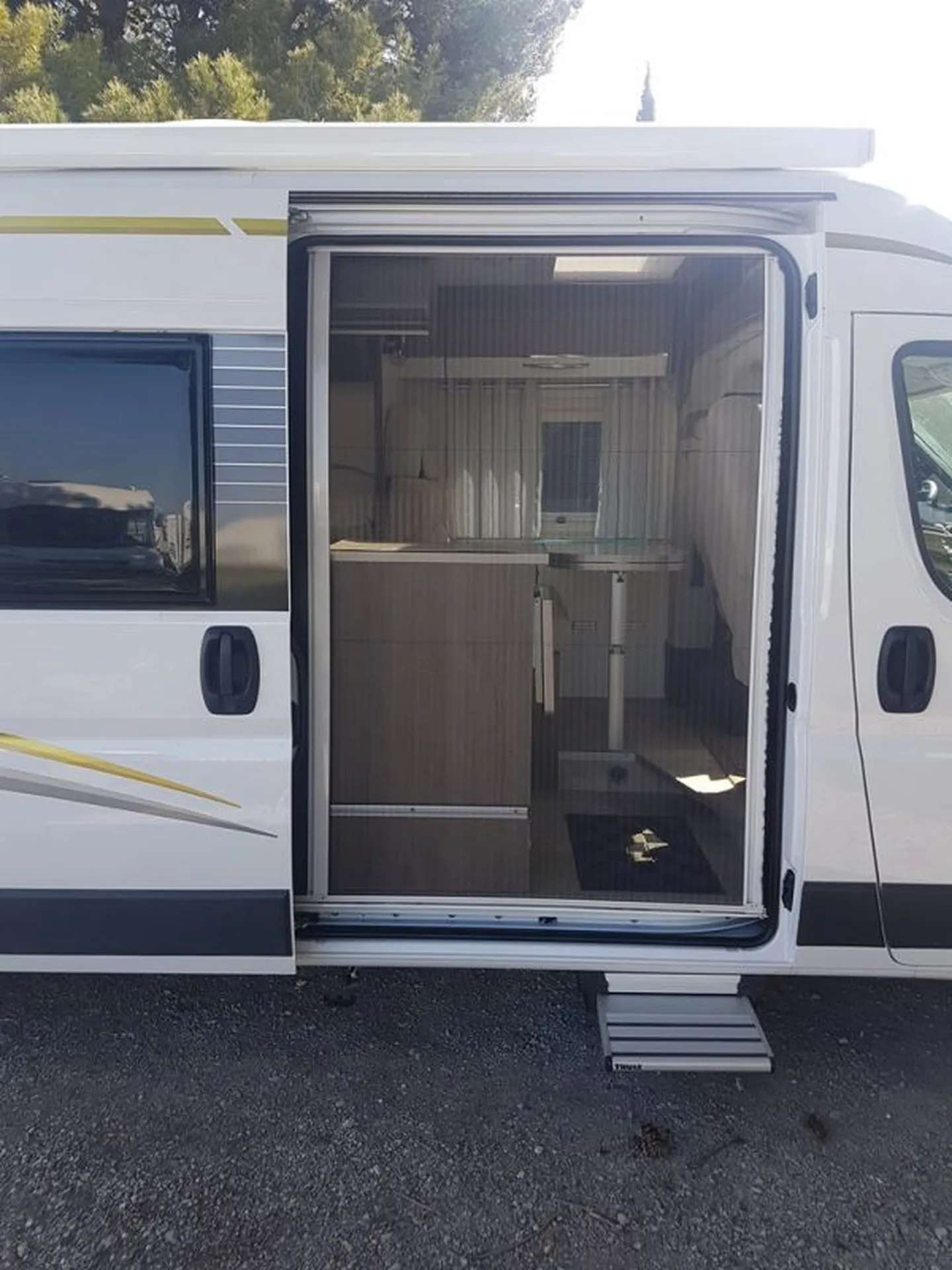 Ce beau FOURGON V600 très pratique par sa petite taille et ces équipements tel que le panneau solaire pour l'autonomie, son store extérieur pour s'abriter du soleil et prendre l'apéro à l'ombre, bien entendu les jours de pluie vous pourrez regarder un bon film devant la télévision puisqu'il à la PARABOLE AUTOMATIQUE !!