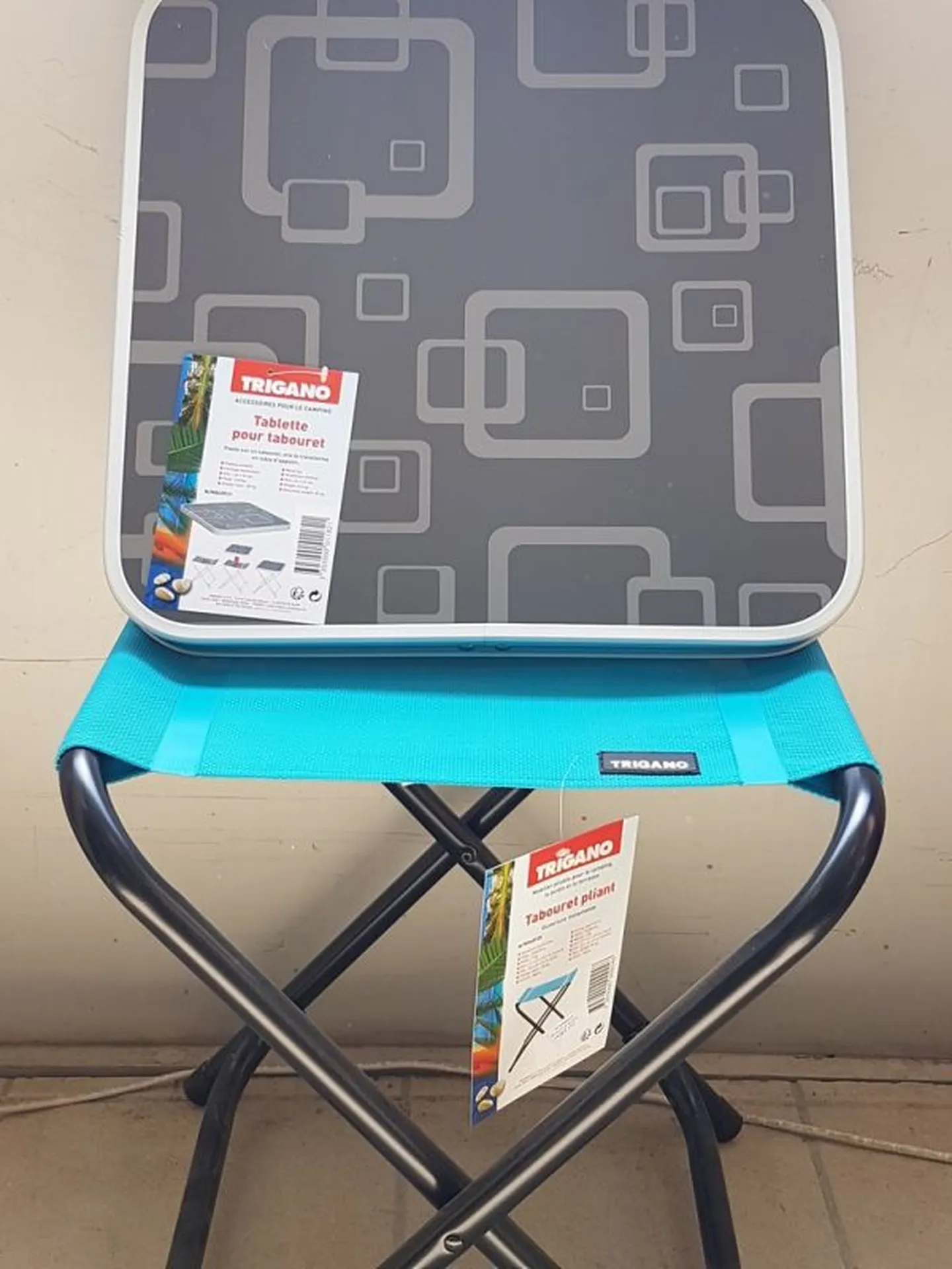 Je vous présente la TABLETTE pour tabouret de camping, elle se pose sur un tabouret et la transforme en table d'appoint, pratique non ?