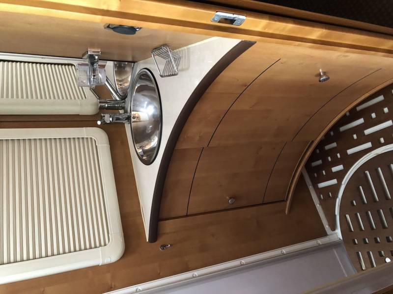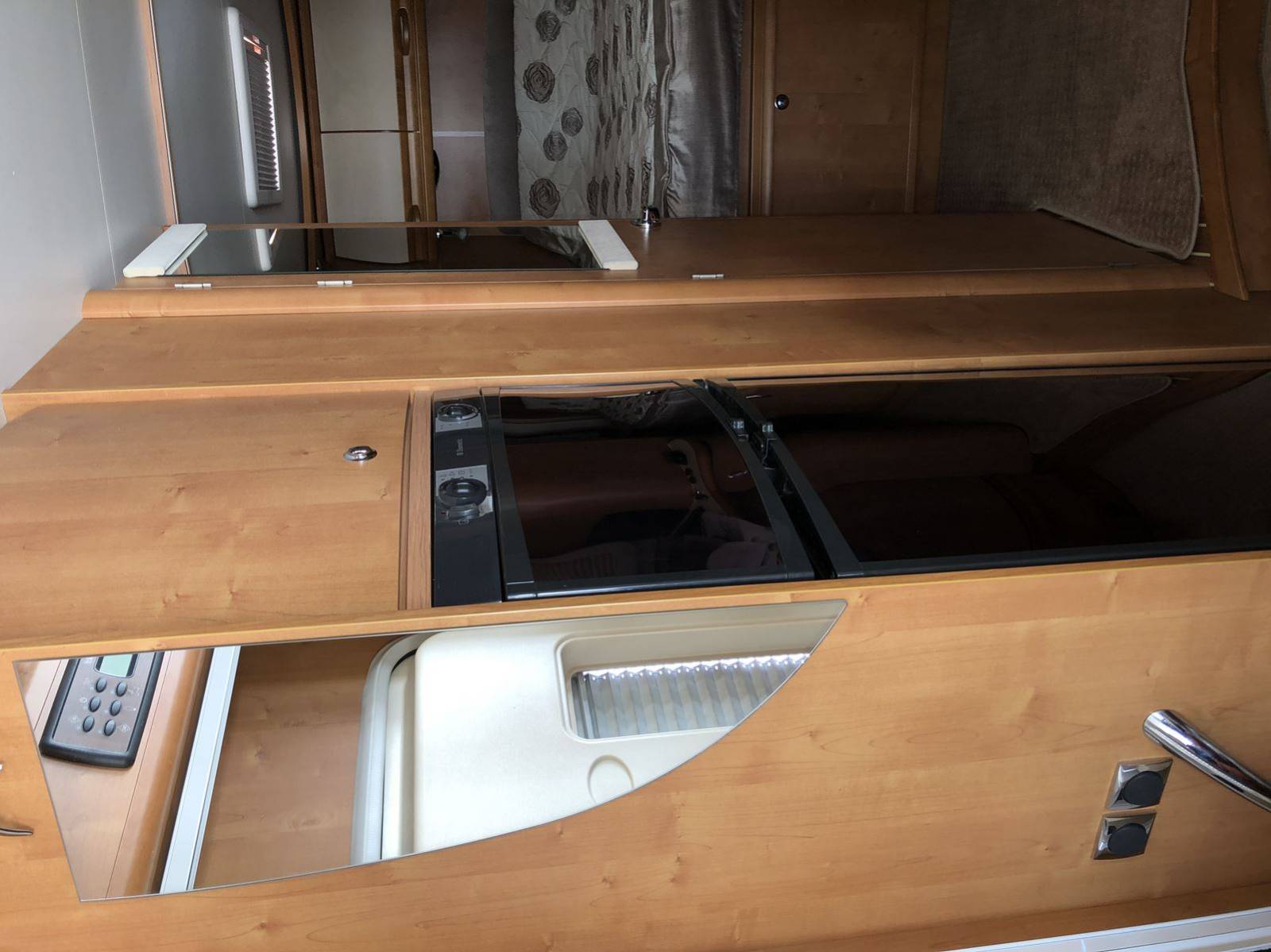 Grand réfrigérateur, congélateur séparé qui fonctionne au 3 énergies donc au 12V ( pour maintenir le froid en roulant), sur secteur 230V et au GAZ. Store et moustiquaire à toutes les baies.