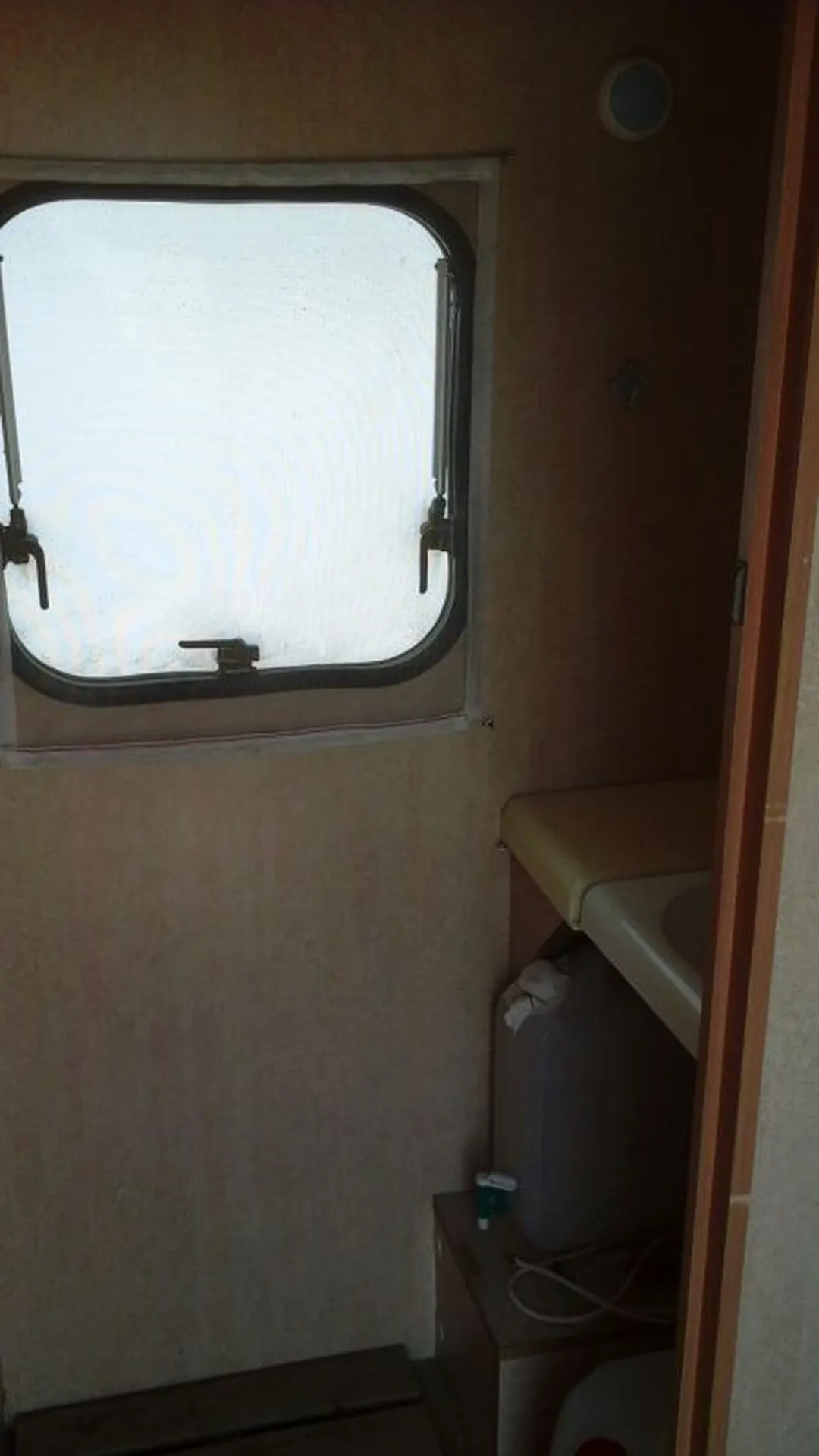 Elle possède quand même un coin d'eau avec un lavabo relevable fonctionnant grâce à une pompe à eau dans un jerrycan de 20 L, dans lequel vous pourrez y mettre un WC chimique portable, elle est munie d'un chauffage et d'un réfrigérateur tri-mixte qui fonctionne au gaz avec des bouteilles situées à l'avant dans le coffre, au 12 V et au 230 V.