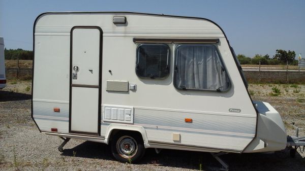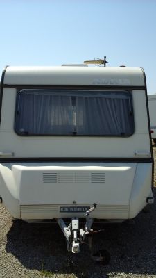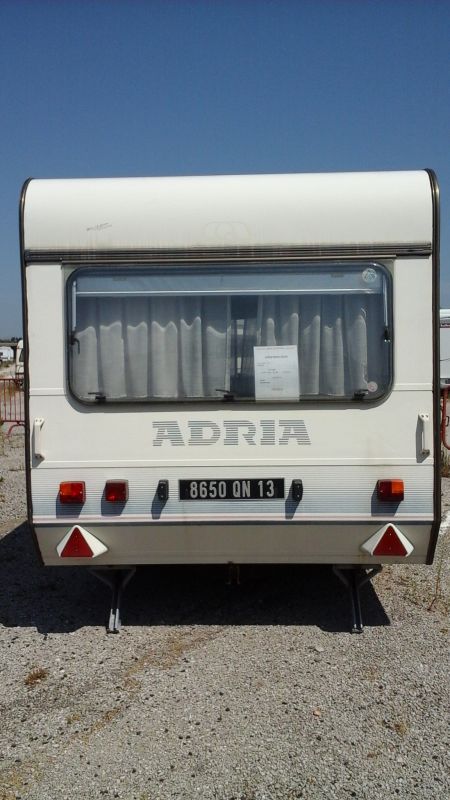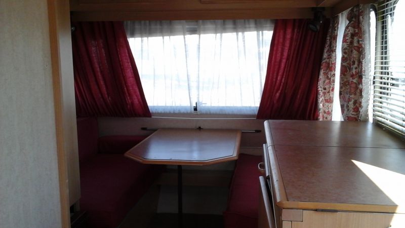 Belle petite caravane de moins de 4 mètres de long, cette ADRIA Prima de 3 couchages a deux coins dînettes se transformant en lit, un de 2 couchages et l'autre de 1 couchage. Pas mal de rangements sous les banquettes.