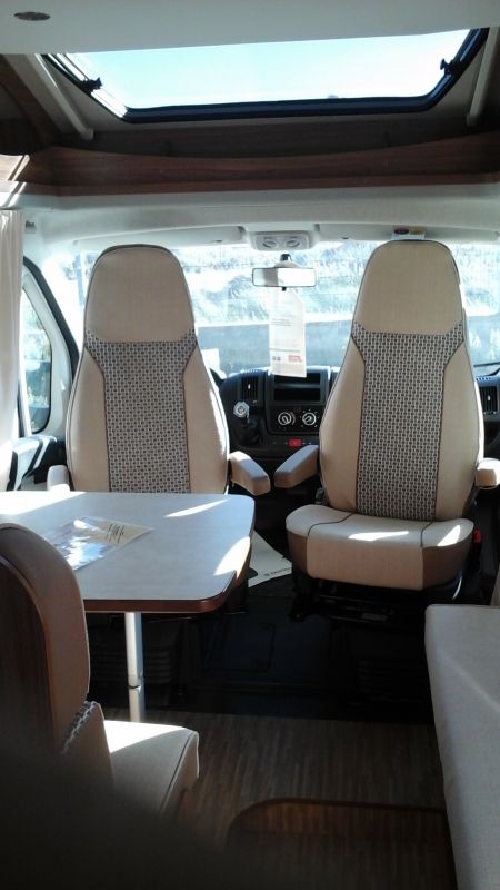 Camping car modèle CARADO T348 du groupe HYMER collection 2014 avec lit à la française (DIM: 195X135) et lit pavillon (DIM: 200X140/120), 4 couchages et 4 places carte grise.