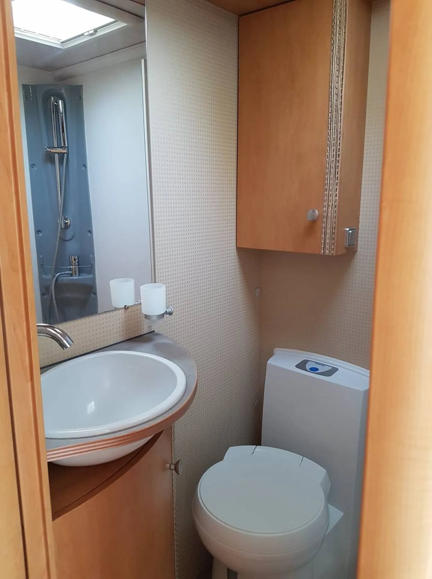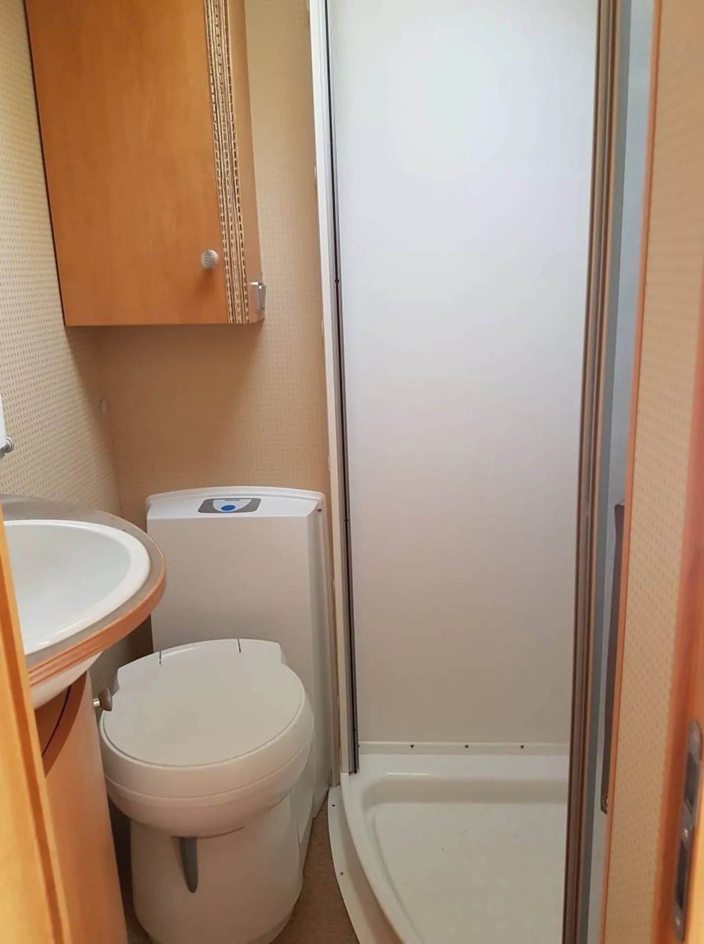 Il possède une parabole satellite manuelle + TV, un store extérieur qui vous protégera du soleil, un GPS pour ne pas vous égarer, un panneau solaire pour être autonome, un attelage, des suspensions à AIR, un volet isotherme extérieur et d'une caméra de recul.