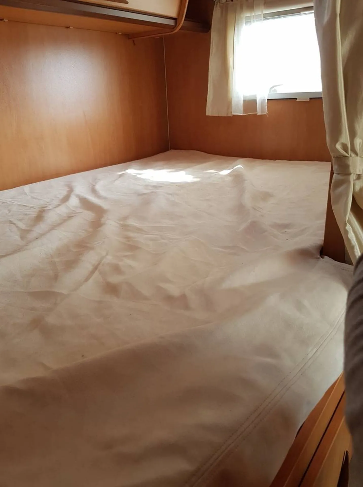 C'est un 4 couchages, lit sur grande soute transversal pour 2 personnes et lit pavillon pour 2 autres personnes et bien sur 4 places carte grise.