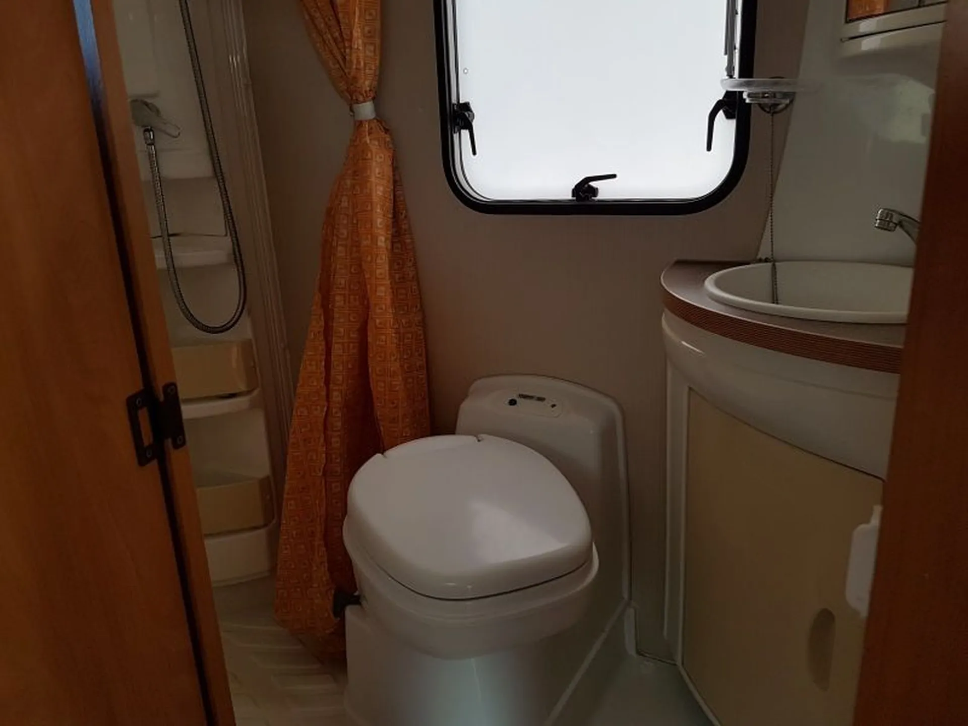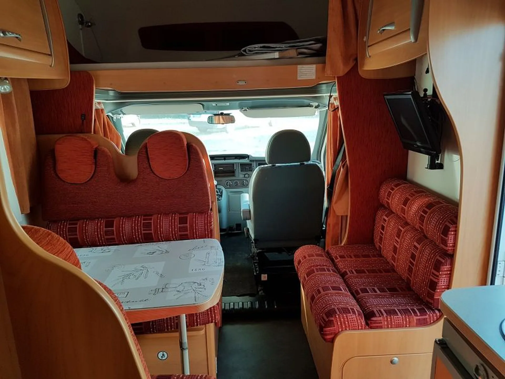 Ce beau capucine de 6 couchages avec lits superposé, lit capucine et coin dinette transformable pour 2 personnes et 6 places carte grise vous séduira par son faible kilométrage de 48000 KMS et ces équipements tel que le store extérieur, son porte vélos X4, son panneau solaire, sa parabole automatique avec démodulateur TNT SAT + TV. Possède une réserve d'eaux propres de 130L et une réserve d'eaux usées de 110L.