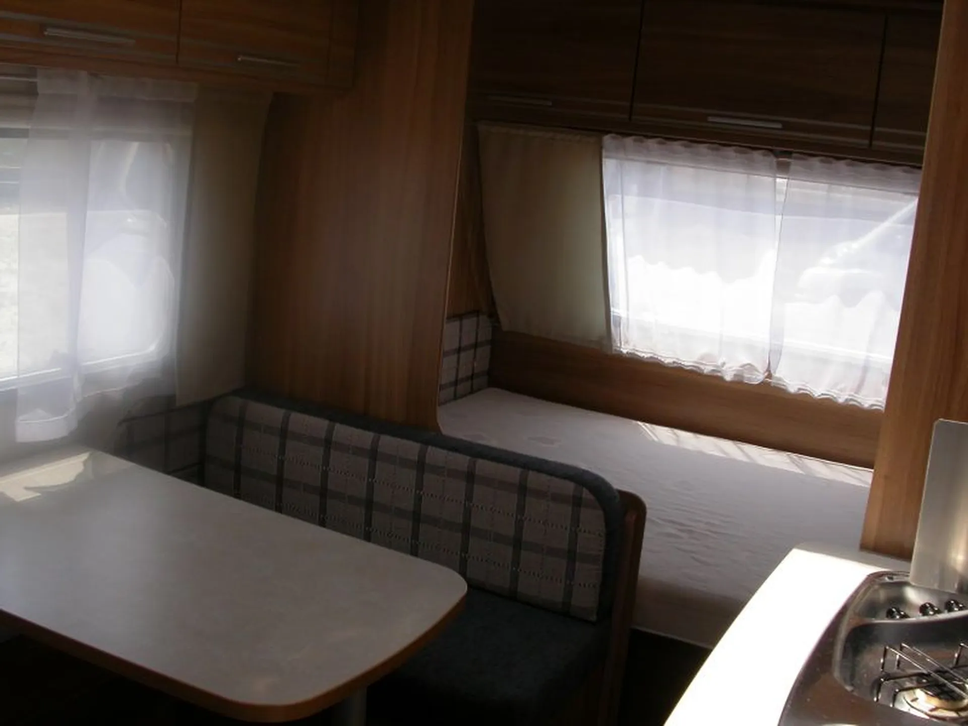 Idéale pour la famille grâce à ces 6 couchages, un lits superposé à l'arrière, un lit transversal à l'avant fixe avec coffre en dessous et le coin dînette transformable en lit d'appoint!!