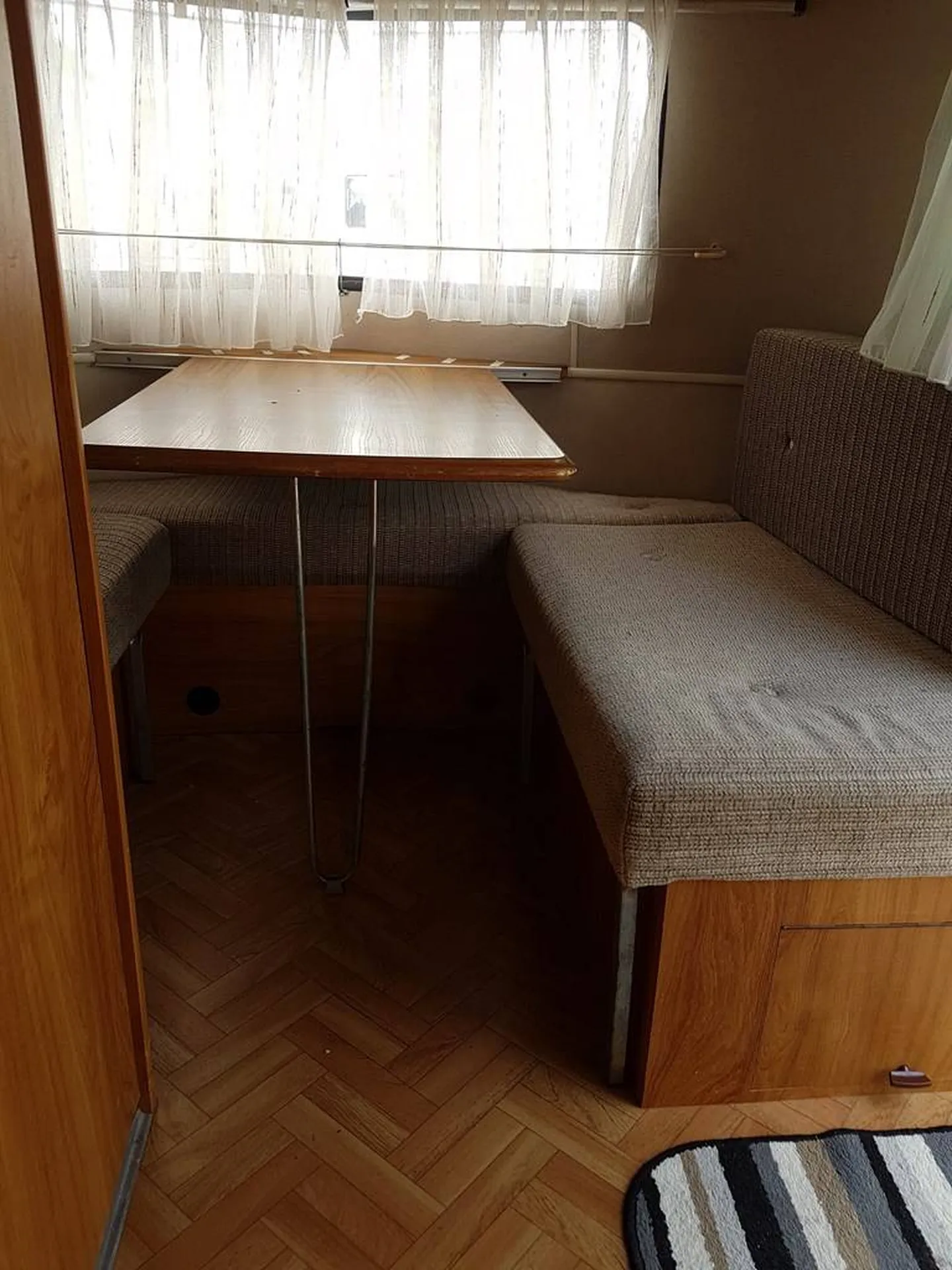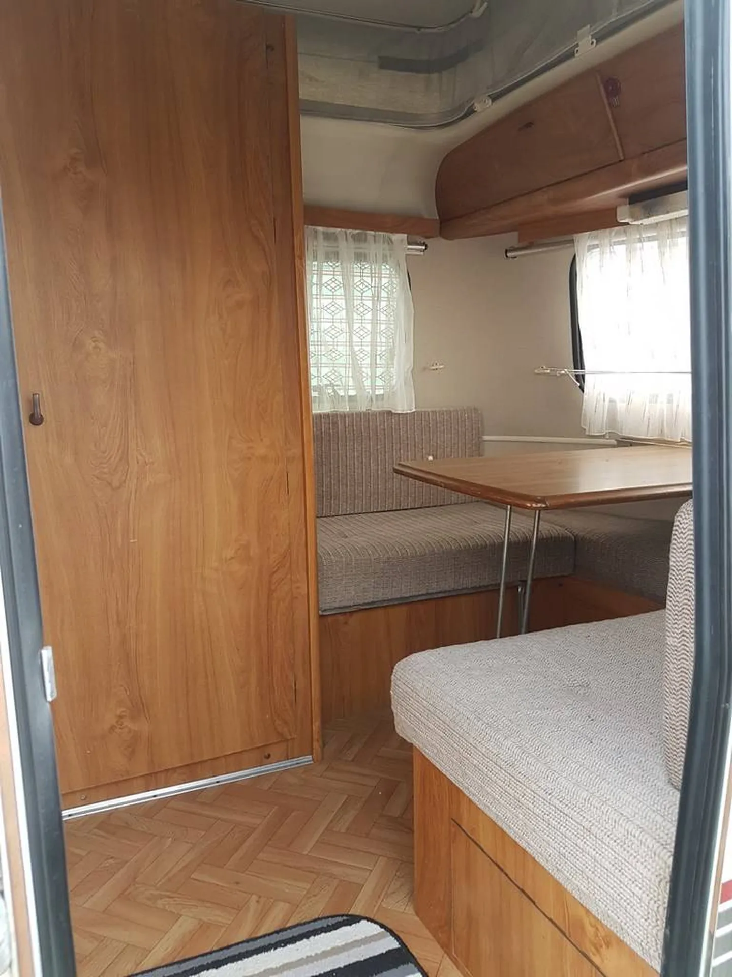 Elle à 2 coins dînette transformable en lit pour 4 personnes. (pas de lit fixe).