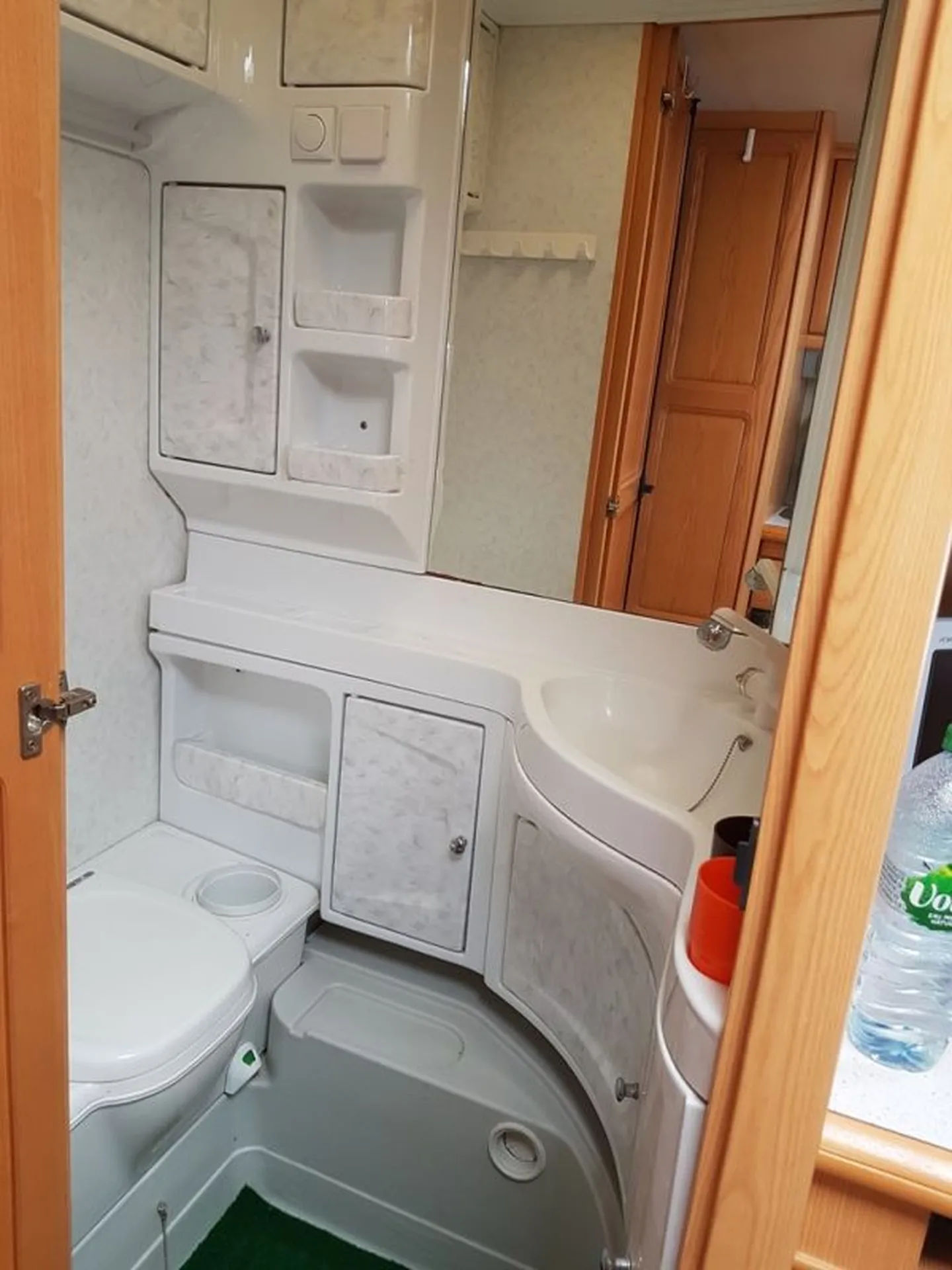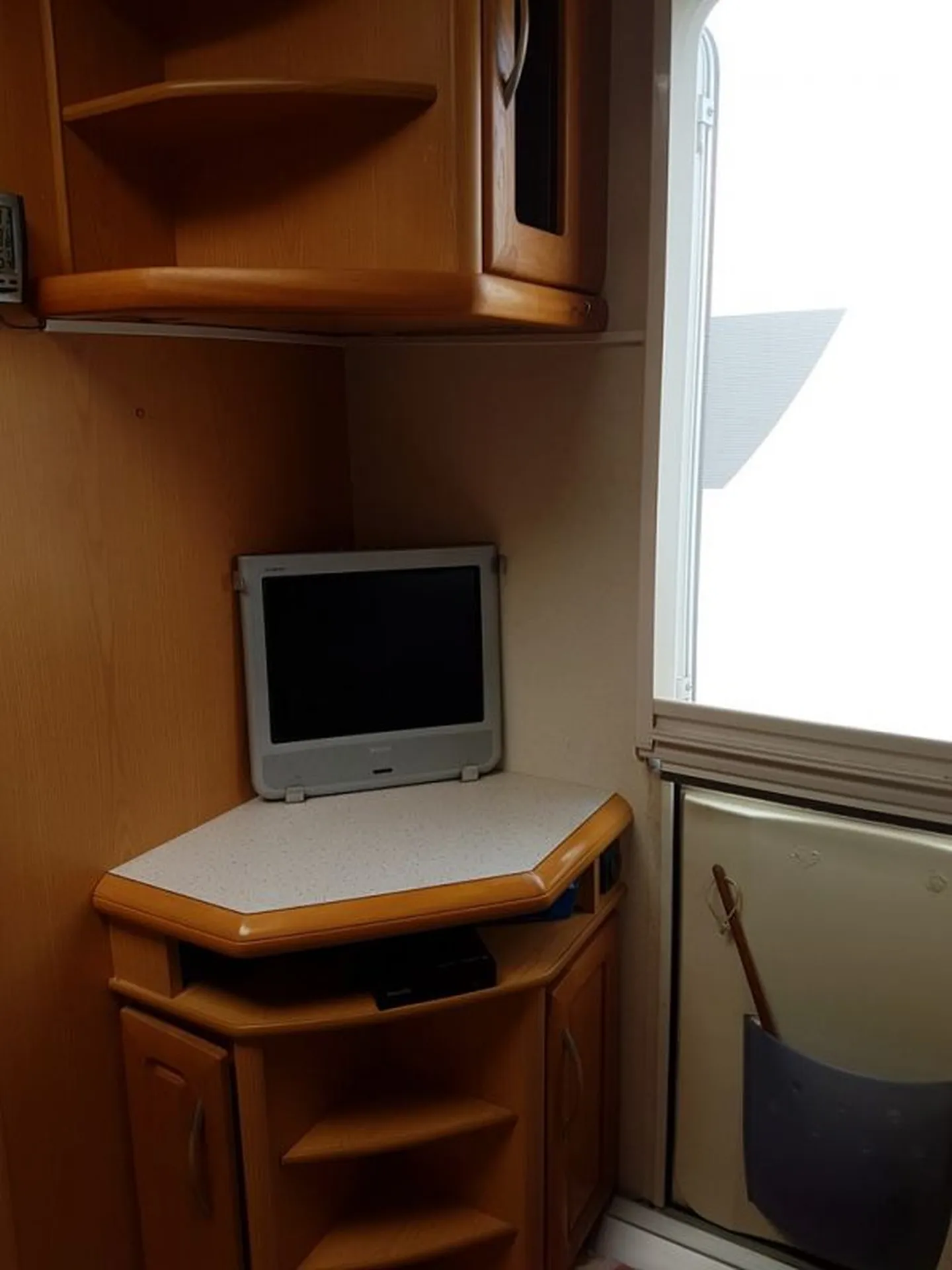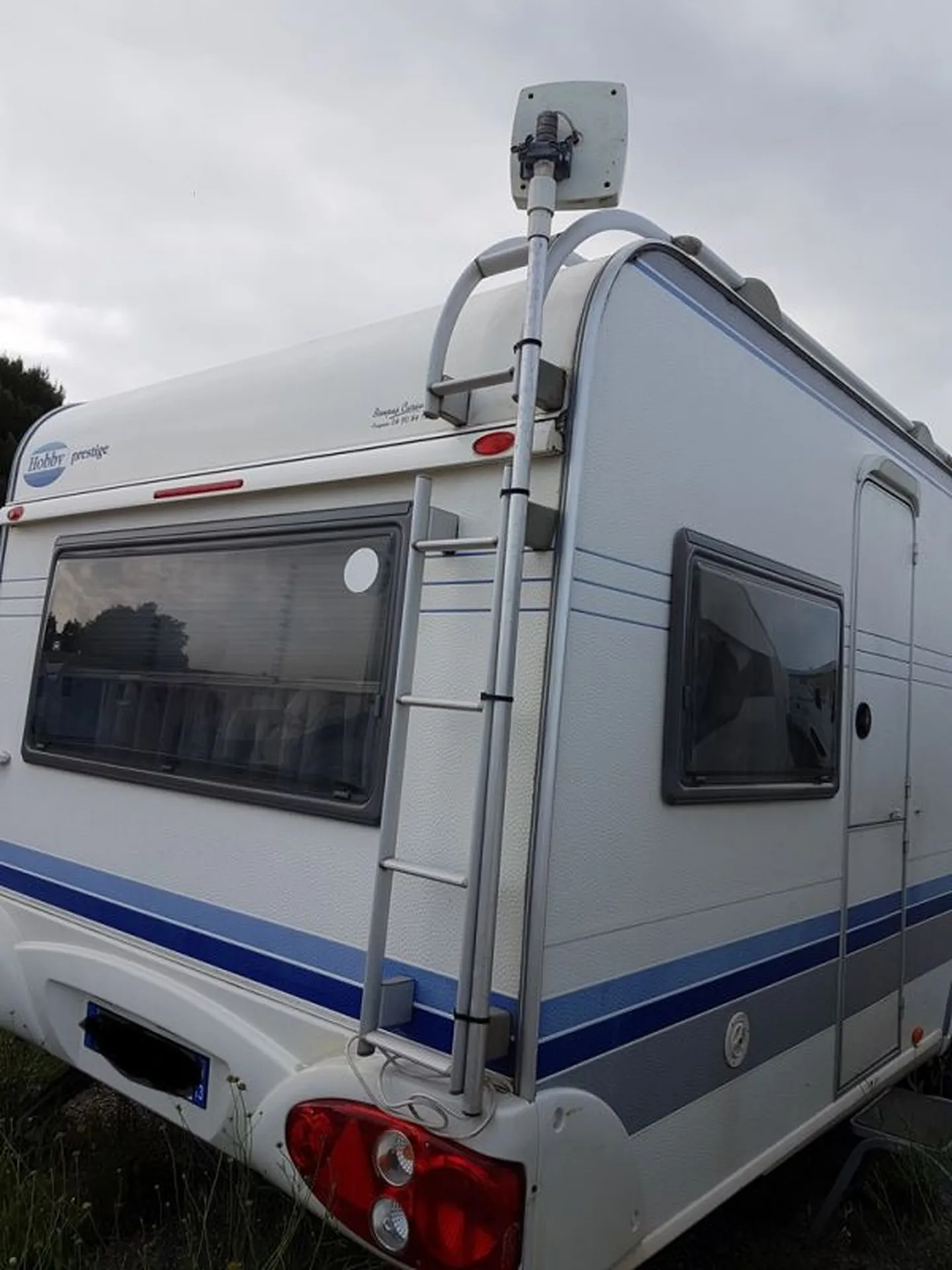 Elle a également un auvent, un déplace caravane bien pratique selon le terrain pour la garer plus facilement, d'une antenne hertzienne sur mât dans la penderie et d'un micro-ondes, idéale pour aller dans les campings. Possède aussi une échelle de toit pour un accès plus facile si vous voulez la laver.