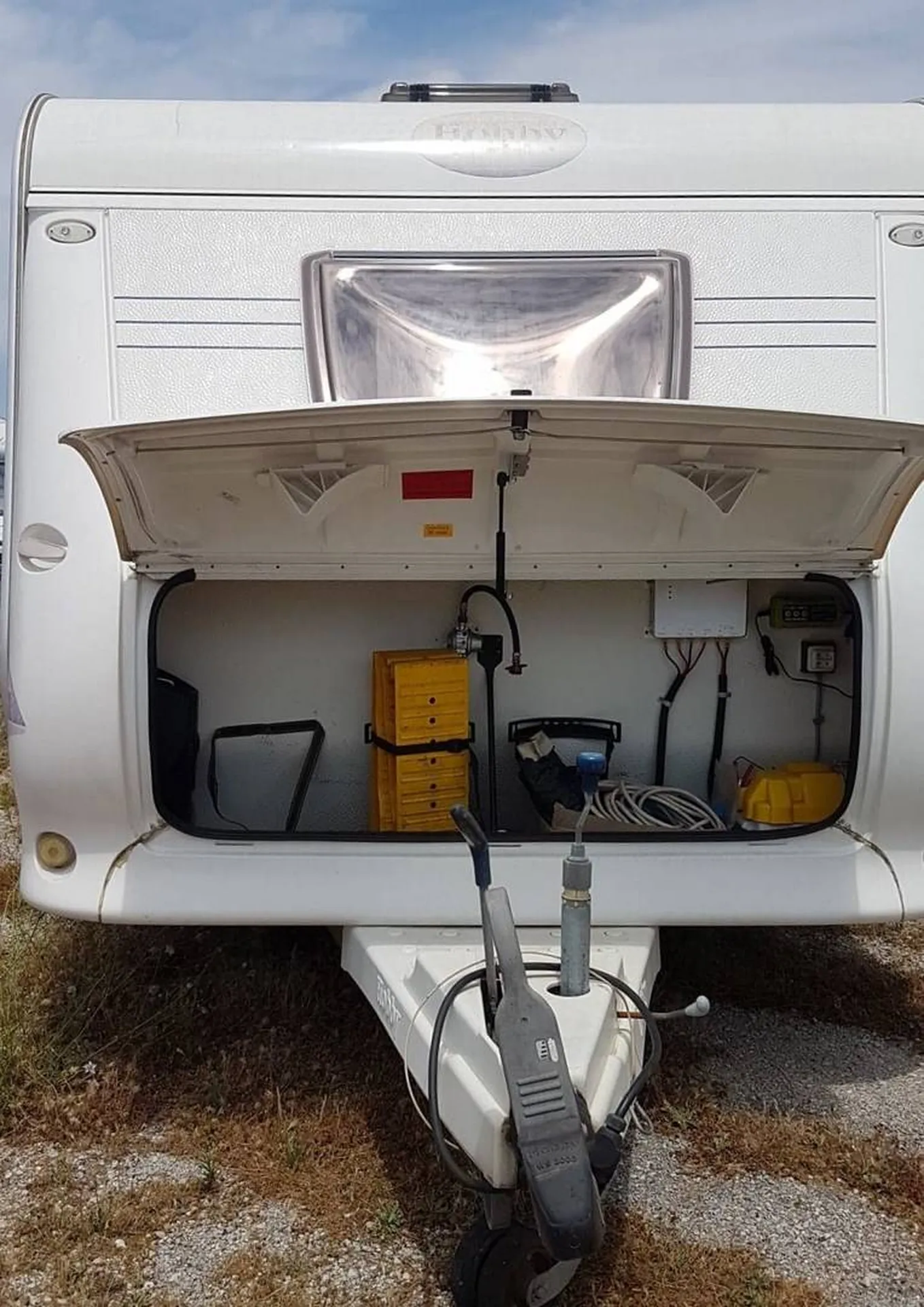 Cette caravane possède comme équipements tout d'abord un auvent qui permet d'avoir un espace de vie en plus 2.50M de profondeur, une antenne hertzienne sur mât télescopique dans la penderie, l'anti-lacet pour une meilleure stabilité sur la route et le déplace caravane qui vous permettra de la placer sans effort sur un emplacement même en montée ou descente jusqu'à 15%.