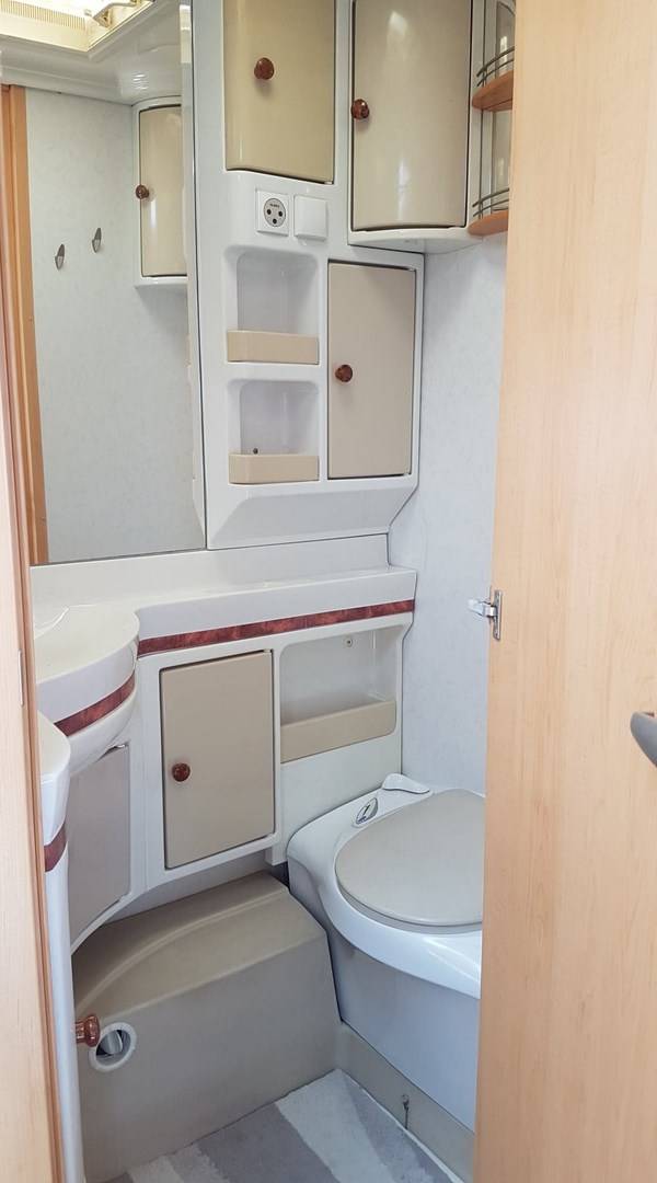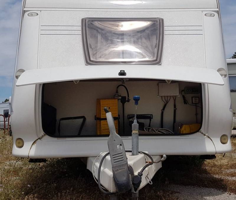 Cette caravane possède comme équipements tout d'abord un auvent qui permet d'avoir un espace de vie en plus 2.50M de profondeur, une antenne hertzienne sur mât télescopique dans la penderie, l'anti-lacet pour une meilleure stabilité sur la route et le déplace caravane qui vous permettra de la placer sans effort sur un emplacement même en montée ou descente jusqu'à 15%.