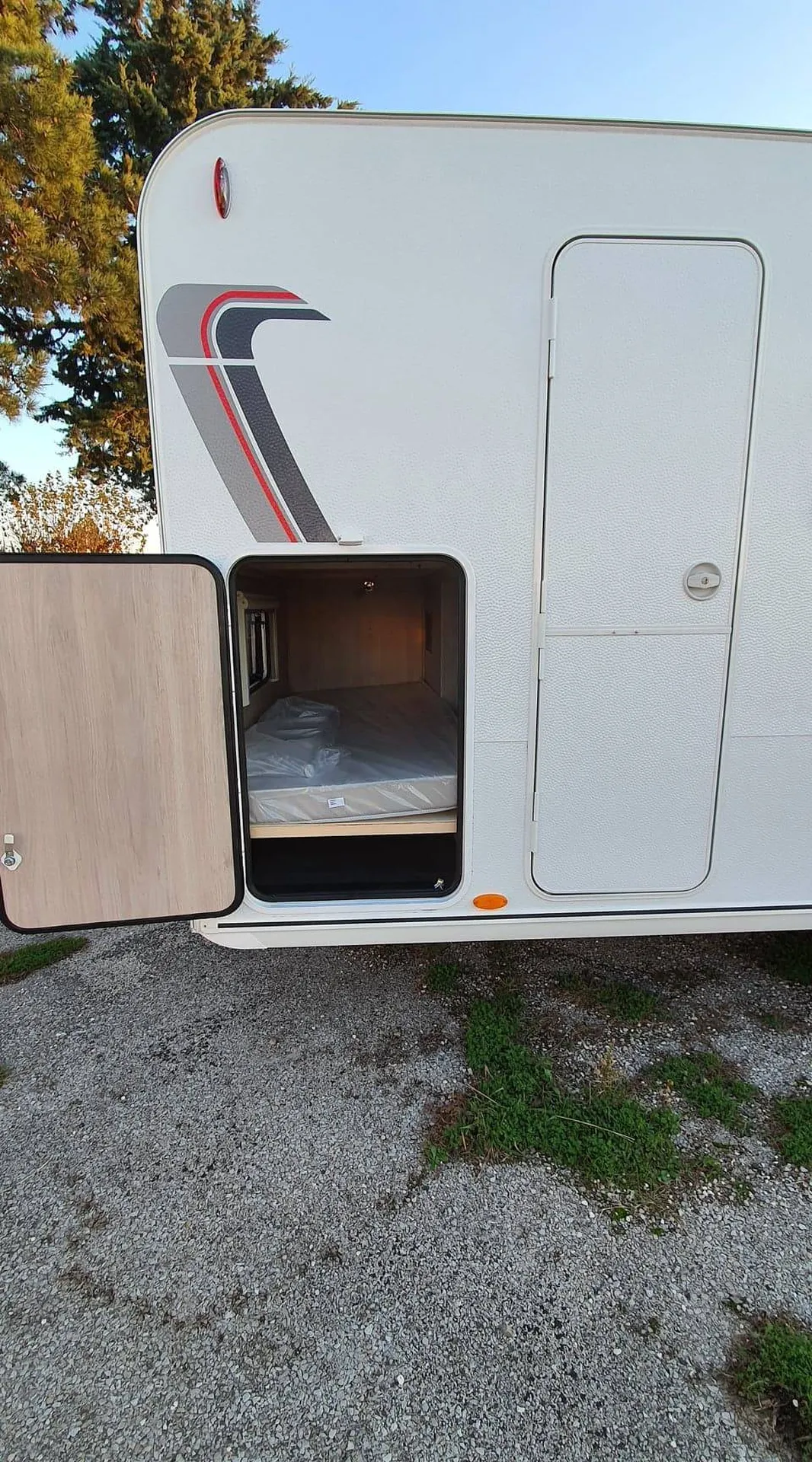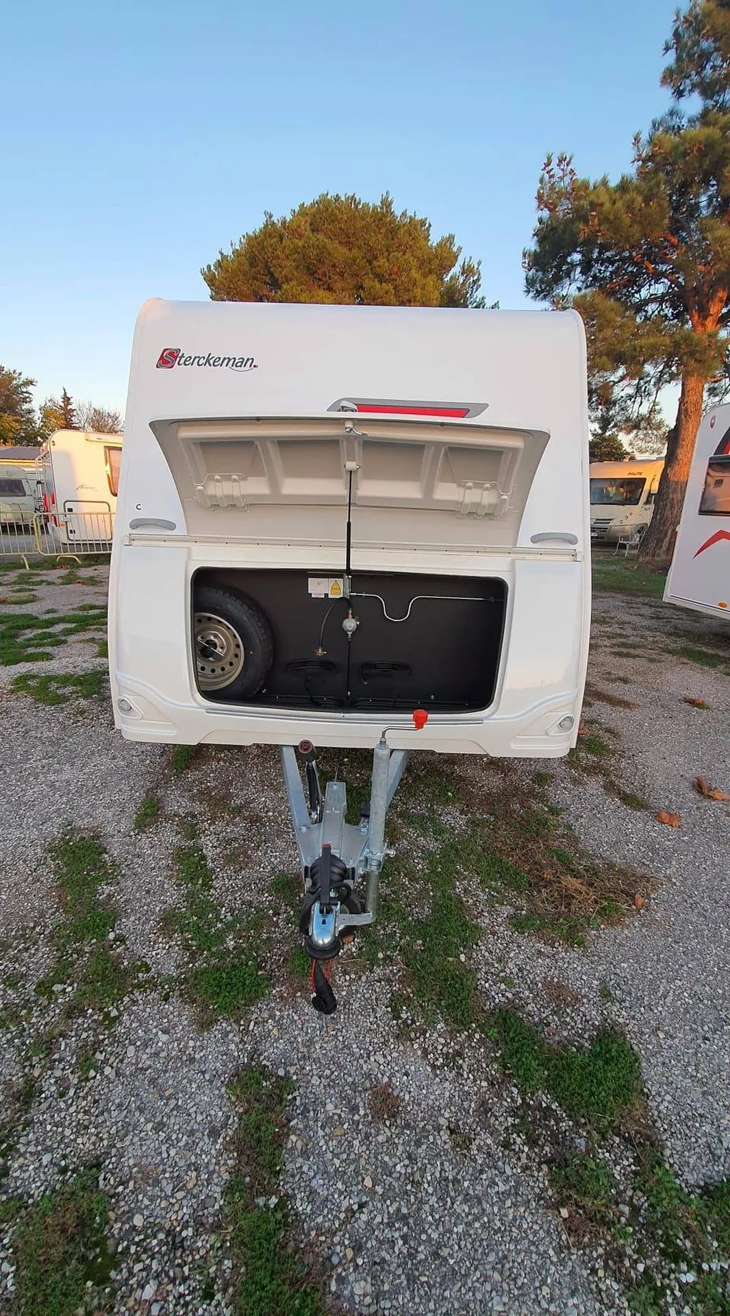 Faces avant, arrière, toit et sous plancher en polyester renforcé et tôle en ALUMINIUM martelée. Isolation exclusive XPS. Enjoliveurs de roue et roue de secours OFFERTE dans le coffre avant.